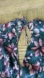 A gorgeous garden springs from the blue background on this alluring cocktail dress styled with an open back and a deeply dipped neckline.
