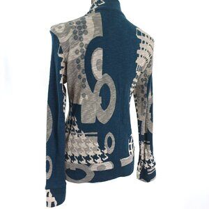 KATINA MARIE Sweater Rhinestone Zip Cardigan Abstract Graphic S