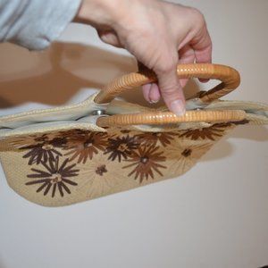 KATY LANDRY Paper Straw with Man Made Materials Pockets Snaps Zip Flowers Tote