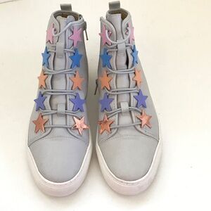 KATY PERRY High Top Sneakers with Stars Astrea Iridescent Gray Women’s Size 8