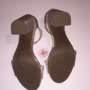 These heels are Katy Perry “The Liz.” Shoes are a gold metallic color and have an ankle strap. Enclosed heel. 3.5” block heel. Good used condition. Size 6.5