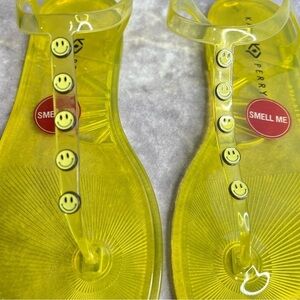 Katy Perry Yellow Jelly Smiley Faces Strap Sandals.