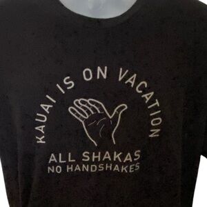 KAUAI is on Vacation “All Shakas No Handshakes” Tee Shirt Men XL