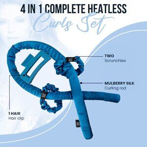 KAV Satin Heatless Curling Rod with Clip and Scrunchie Set, 4pcs set - Blue