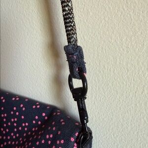EUC KAVU shoulder bag with black and pink dot pattern. Ideal for daily outings.