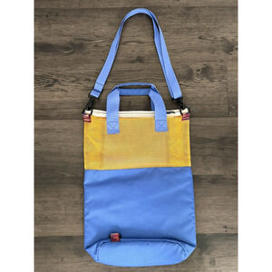 KAVU Cocoa Beach Travel Tote/Sling Bag Blue Canvas/Yellow Mesh Summer Adventure