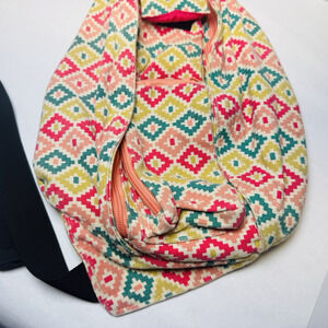 KAVU Crossbody 4 Rope Sling Bag Backpack Tribal Aztec Geometric Pink Multicolor