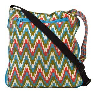 Excellent pre-owned condition! Very nice and clean! From a smoke/pet free home. This KAVU bag actually expands! So, you can make more room if you need it! Brightly colored cotton canvas crossbody bag. Inside, it has a nice, zippered pocket. Has magnetic snap closure. On the outside, is a large slip pocket on the front with velcro closure and a smaller pocket in front of that with a key hook and velcro closure under flap. It also has a zippered pocket on the back. Great bag! Long, adjustable crossbody strap is rope and nylon. Bag measures approx. 10"long x 10"high x 5"deep. PLEASE ALWAYS LOOK CLOSELY AT ALL PHOTOS BEFORE DECIDING TO MAKE A PURCHAE IN CASE I MISSED SOMETHING.