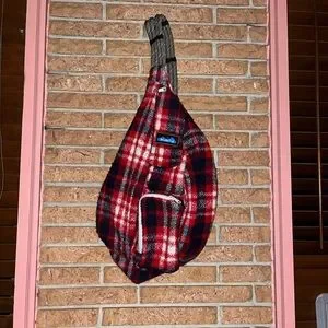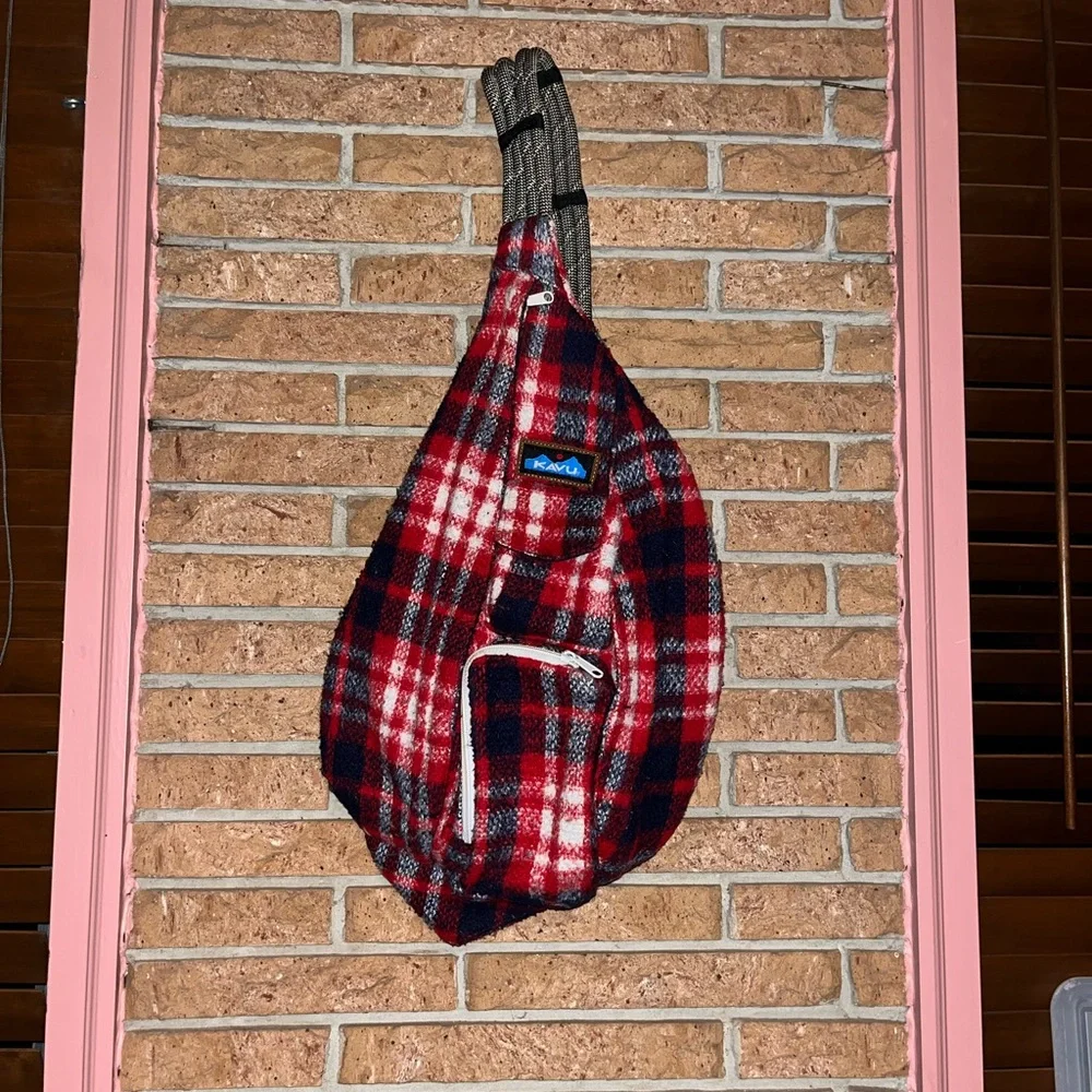KAVU Rope Bag, flannel like material. In wonderful condition! 🥳 Two main pockets, with an internal zip pocket and two front pockets. Comes from a smoke free home. Will ship within 3-5 business days.