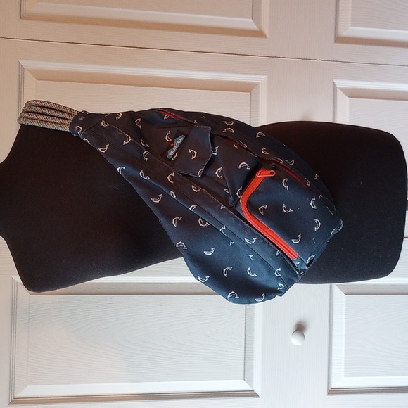 Used Kave fly fish (retired pattern) rope bag. No rips or holes. All zippers are good. Some wear places, see pictures. From smoke free home.