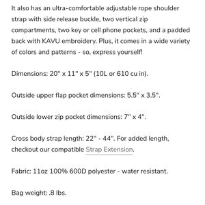 EUC KAVU rope Sling backpack. Washed once on cold gentle cycle, hung to dry. No stains, tears or foul smells. Great for everyday use, a hike or whenever you just want to be hands free!