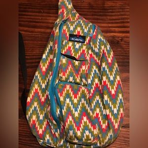Gently used KAVU Rope Sling Bag (not mini!) in Garden Tile print (pink, green, blue, white)