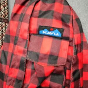 KAVU Rope Sling Bag Red Black Buffalo Plaid Crossbody Backpack Rope Strap OS
