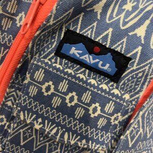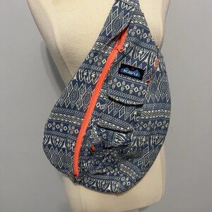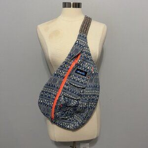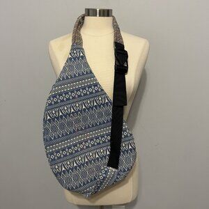 KAVU Rope Sling Crossbody Bag Boho Blue Aztec Print Canvas Backpack Travel