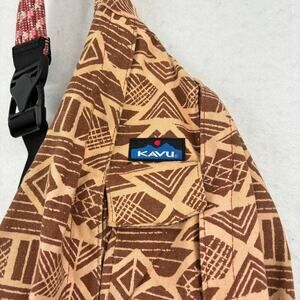 KAVU Sling Bag Burnt Orange Brown Aztec Tribal Print Canvas Rope Shoulder