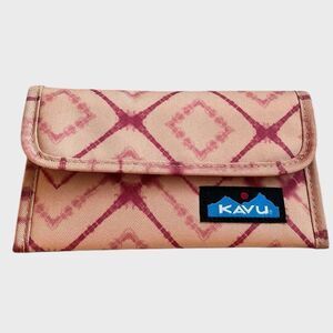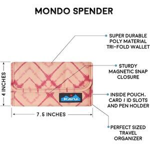 KAVU Presents: The Mondo Spender, a totally rad trifold wallet that keeps your cash, cards, and ID secure. A magnetic snap closure is strong and the rear external pocket has a zipper to safely stores anything else you need to stash.
