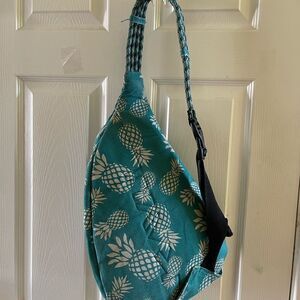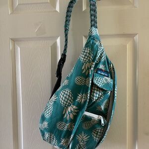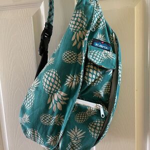 KAVU Original Rope Bag Sling Pack Adjustable Rope Shoulder Strap mint green&beige. Two front zipper two front pockets padd back. Pre owned in good used condition. Normal wear clean. See all pictures any questions please message.M8