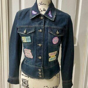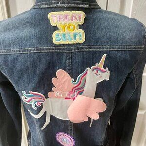 KAWAII EMBELLISHED UNICORN DENIM DISSTRESSED WASHED PATCH JACKET SIZE S