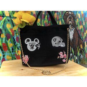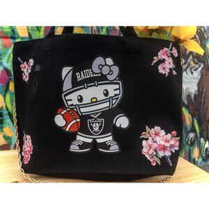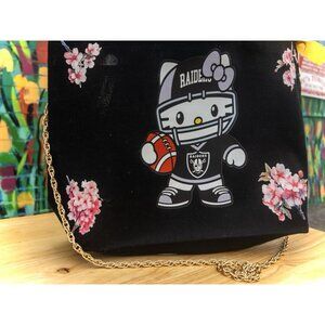 KAWAII KITTY Raiders Football Handmade Black Canvas Tote Bag With Rope Chain