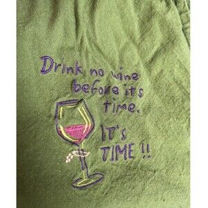 Kay Dee designs green apron with embroidered wine glass and drink no wine before its time , Its time!