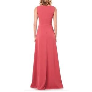 Elevate your style with this sophisticated sleeveless jumpsuit, crafted from luxe stretch crepe for a sleek and flattering fit. Designed with a V-neckline bodice and tailored ankle-length pants, this striking piece is dramatically enhanced by a floor-sweeping, open-front baroque ball skirt for a modern-meets-majestic look. Features include a hidden back zipper, partial lining, and impeccable tailoring for an elegant finish.