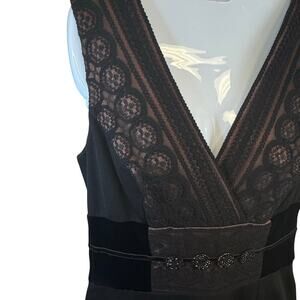 KAY UNGER Black Lace Overlay Bodice V Neck Knee Length Cocktail Dress. Waist accentuated with Velvet and Lace Flattering Silhouette MSRP: $225