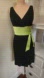 Elegant black sleeveless sheath cocktail dress with silk chartreuse banded waist.