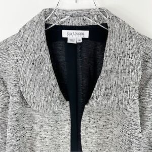 KAY UNGER Metallic Black and White Silk-Blend Tweed Crop Jacket/Blazer - Size 16