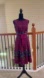 Stylish purple KAY UNGER SILK dress featuring a blue floral pattern. Draped back adds elegance. COCKTAIL, EVENING OUT, PURPLE BROWN AND BLUE, COWL NECK BACK,,FULLY LINED, SLEEVELESS, SIDE ZIPPER, TIE RIBBON BELT, FITTED WAIST. PRE OWNED IN BEAUTIFUL CONDITION! PTP 16” LENGTH 39”