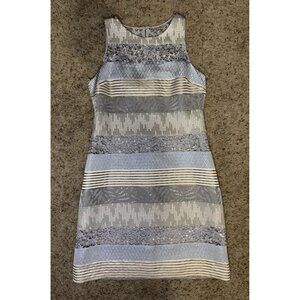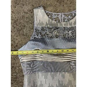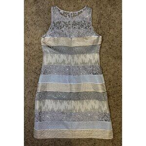 KAY UNGER Silver Gray Metallic Sequin Lace Sheath Dress BEAUTIFUL Formal 10 READ