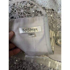 KAY UNGER Silver Gray Metallic Sequin Lace Sheath Dress Sz 10 BEAUTIFUL Formal
