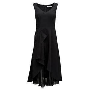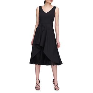 KAY UNGER Black Portrait V-Neck Stretch Crepe Ruffle Pleated Fit Flare Dress 4