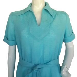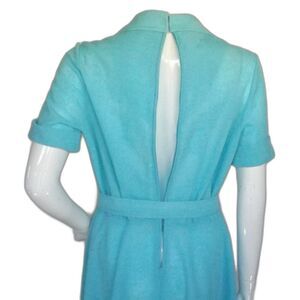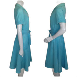 KAY WINSOR Day Dress, L, Aqua Blue, Short sleeves, Dagger collar, VINTAGE