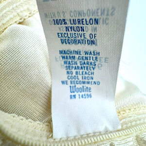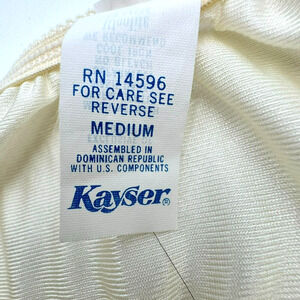 This vintage KAYSER nightgown is a beautiful addition to any collection. The full-length, soft cool silky smooth material is perfect for a comfortable night's sleep. The butter yellow color adds a pop of brightness to the 50s-60s style. Made in the United States, this original Lurelon nylon gown is a rare find. The brand is known for their quality and this piece is no exception. The intimates and sleep size is medium, making it a great fit for any woman's collection. Don't miss out on the chance to own this stunning piece of vintage clothing.