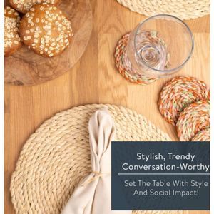 KAZI Essentials Boho Round Woven Placemats Set of 30 Natural Wicker 13"