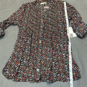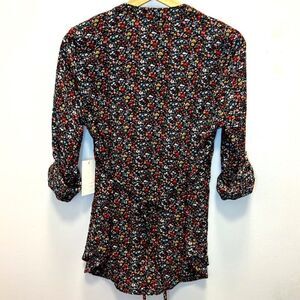 Get your NWT Women’s Black Floral Roll up Sleeve Button up Tie Waist Blouse in Size Medium by Kaii now!