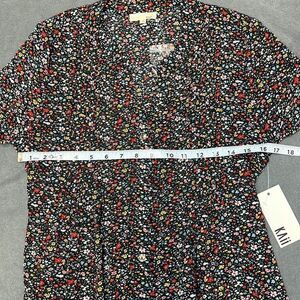 KAii Women’s Black Floral Roll up Sleeve Button up Tie Waist Blouse Size Medium