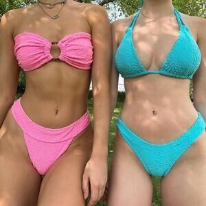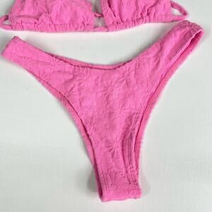KB KINIS | Cheeky Bikini Set Textured Floral Print Pink Size L