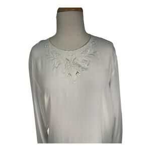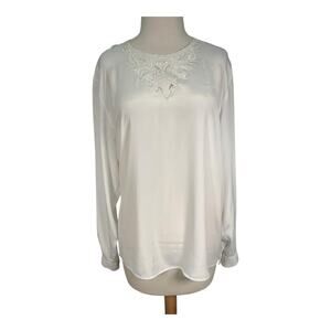 K.B. Lawrence Womens Blouse Silk Like Embroidery Neckline Light Weight Size 10