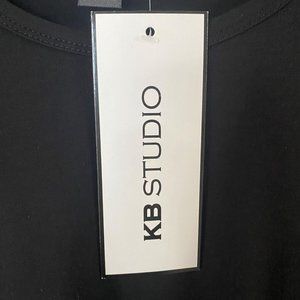 KB Studio Floral Print Blouse Womens Large Black Multicolor Drape Sleeve Top New