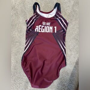 Sporty region 1 KB leotard size child 11/12. Comfortable and cute. Burgundy, silver and black. Good condition