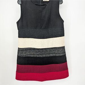 Elevate your style with this Women's Striped Sleeveless Dress. Featuring bold black, cream, and red stripes, this dress is perfect for any occasion. Enjoy a chic and comfortable fit with its sleeveless design.