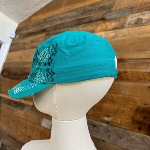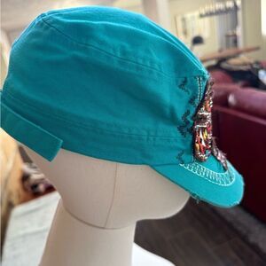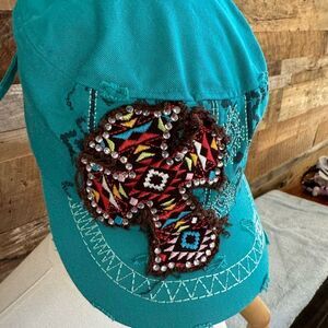 KBethos Women's teal Distressed southwest goth jewels hook & loop cross adj hat