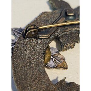 Preowned brooch. Looks like a piece may have been glued back on since there appears to be residue. Some fading on the pumpkin as well. Overall looks nice!