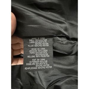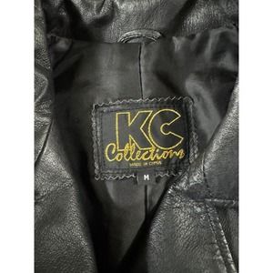 This KC Collections leather jacket is perfect for casual wear and features a solid black color with a biker style. It has a zipper closure, long sleeves, and a collared neckline. The jacket is made of high-quality leather with a polyester lining material that provides warmth and comfort. The outer shell material is also leather, and it features two pockets with velcro closures and a regular fit size type. This jacket is perfect for the winter, fall, and spring seasons, and it has a vintage look with biker, 80s, and 90s theme. It is a short-length jacket suitable for women of size M. The jacket was made in China and is a perfect addition to any wardrobe.