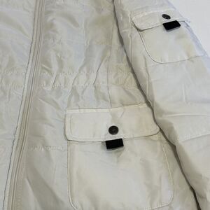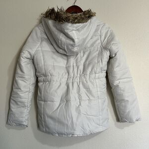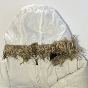 KC Collections Women's L Jacket White Hood Faux Fur Wind Rain Puffer Coat
