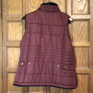 KC Collections Women’s XL Burgundy & Black Reversible Quilted Vest Faux Fur Zip