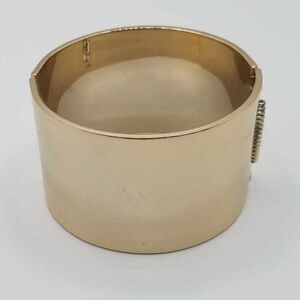 Bangle is in good pre owned condition. There is minor wear. Measures 1 1/2" across fits a 7" wrist. Makes a very bold statement.
