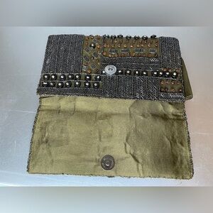 KC Malhan Brown Beaded Small Clutch Made in India Cotton Lined Twill Fabric