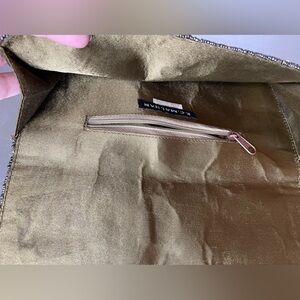 The interior of the clutch is lined with brown twill fabric and includes inner pockets to keep your essentials organized. Measuring 5 inches in width and 9 inches in height, this rectangle-shaped clutch is the perfect size for a night out. The bohemian and hippie theme is highlighted through the festival-inspired accents. This pre-owned vintage item comes with a brand card and is in excellent condition.